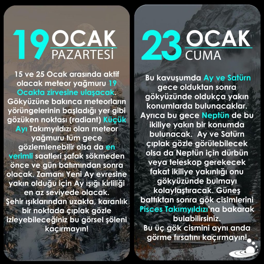 Her ay paylaşacağımız gözlem takvimlerini takip ederek, ilginizi çeken olayları kaçırmadan gözlemlerinizi sürdürebilirsiniz 💫🔭